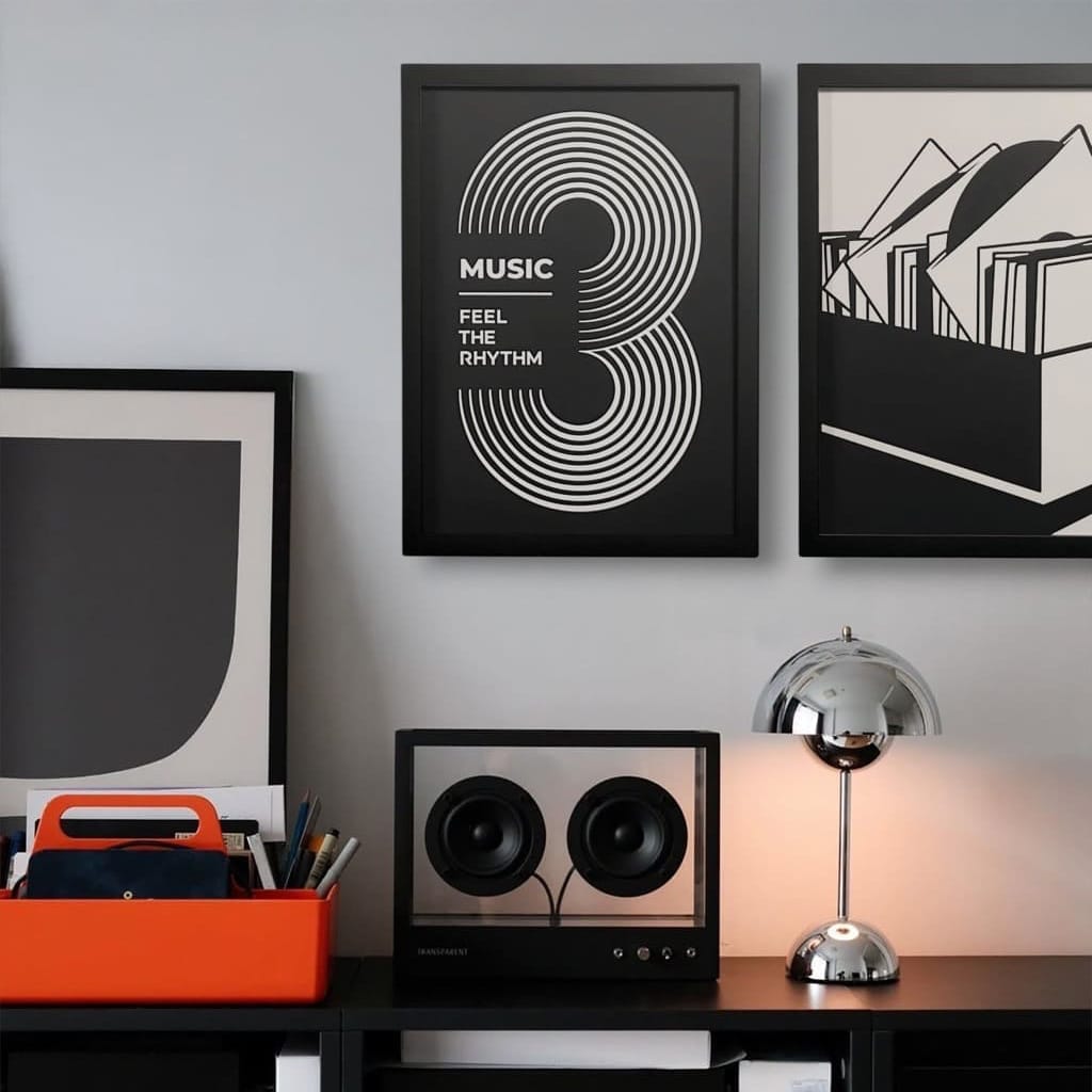 「聴こえないはずの音」が形として部屋のムードを整えてくれます。音楽を楽しむ空間はもちろん、心地よい波長に身を任せたい日常のワンシーンにも。いつもの空間にやわらかい流れをもたらす一枚です。