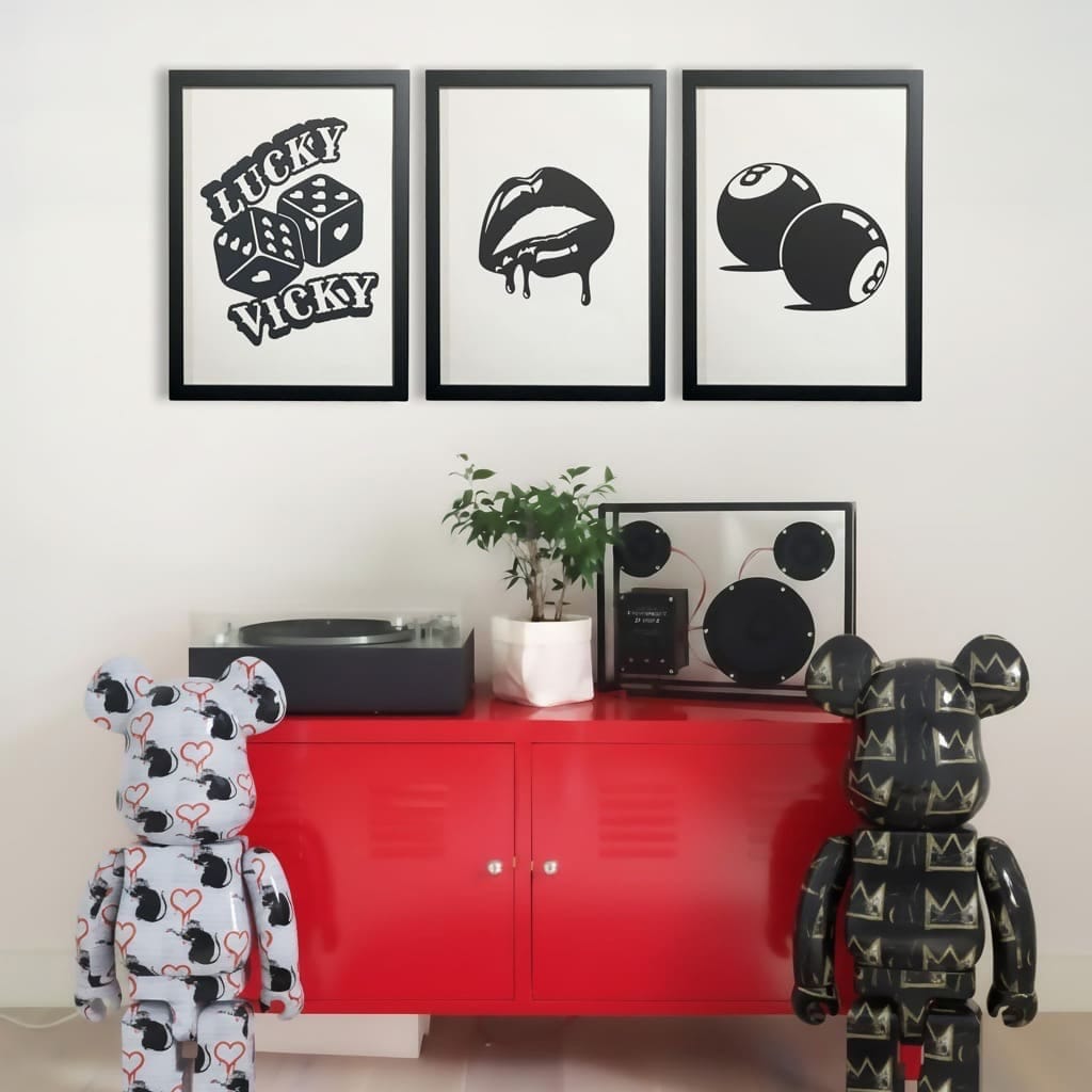 なめらかな曲線と大胆なカットラインが視線を引き寄せ、飾るだけでスパイスのような刺激をひとさじ。ドレッサー周りやベッドルームはもちろん、遊び心のあるギフトとしてもぴったりです。少し盛り上がりたい日常のワンシーンに寄り添う一枚です。